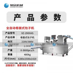 290IIAS卷面式包子機,可生產(chǎn)各種不同餡料的包子、各式包餡食品,如豆沙包、南瓜餅、肉包、小籠包、水晶包等幾十種包餡制品。適用于個體戶、食品廠、學(xué)校等單位食堂??蓾M足不同客戶群體。免費提供工藝技術(shù)。