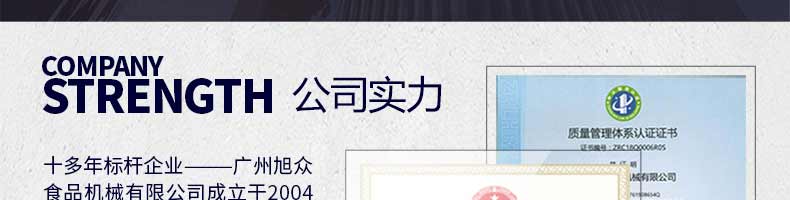 廣州旭眾食品機械有限公司是一家集科研開發(fā),生產(chǎn)設(shè)計,營銷服務(wù)為一體的現(xiàn)代化生產(chǎn)企業(yè)。現(xiàn)代化生產(chǎn)車間,精湛制造技術(shù),所產(chǎn)機械歷經(jīng)市場重重考驗,不斷贏得海內(nèi)外客戶的贊譽。