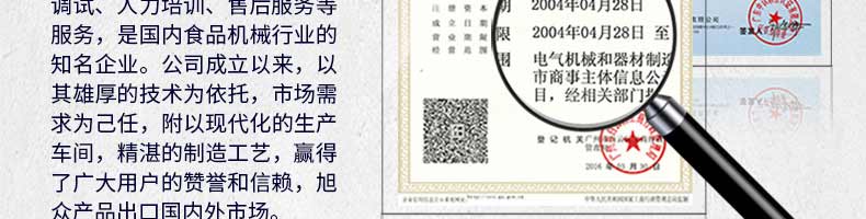 廣州旭眾食品機械有限公司是一家集科研開發,生產設計,營銷服務為一體的現代化生產企業。現代化生產車間,精湛制造技術,所產機械歷經市場重重考驗,不斷贏得海內外客戶的贊譽。