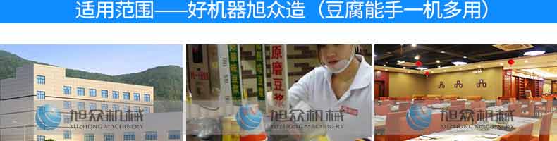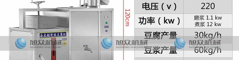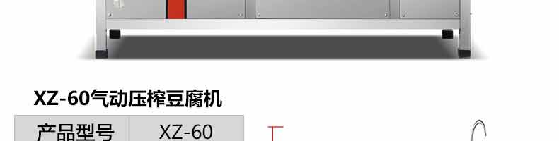 XZ-60智能豆腐機,一機多用:可生產豆腐系列產品:單色(嫩,老)豆腐、多彩豆 腐、單色豆腐皮、多色豆腐皮、彩色豆腐干、豆漿、豆花等豆制品制作,還可以與其他設備和工藝配套生 產更多的豆制品。