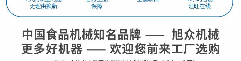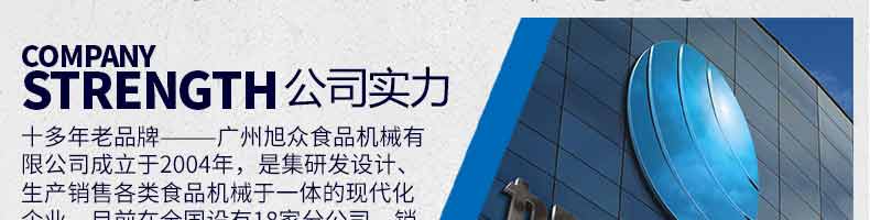 廣州旭眾食品機械有限公司是一家集科研開發,生產設計,營銷服務為一體的現代化生產企業?,F代化生產車間,精湛制造技術,所產機械歷經市場重重考驗,不斷贏得海內外客戶的贊譽。