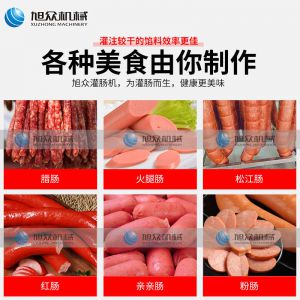 XZG-40液壓灌腸機(jī),液壓灌腸機(jī),可升降灌腸餡管,液壓氣動式灌腸。灌注較干的餡料效率更佳,各種美食由你制作。旭眾灌腸機(jī),為灌腸而生,健康更美味。