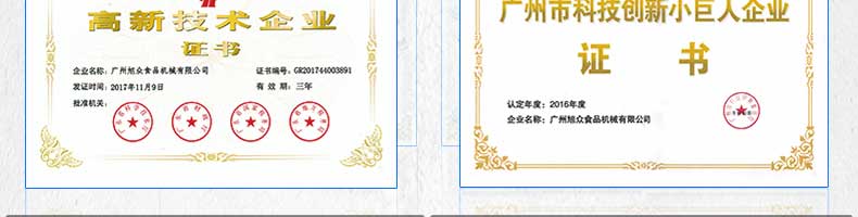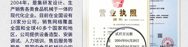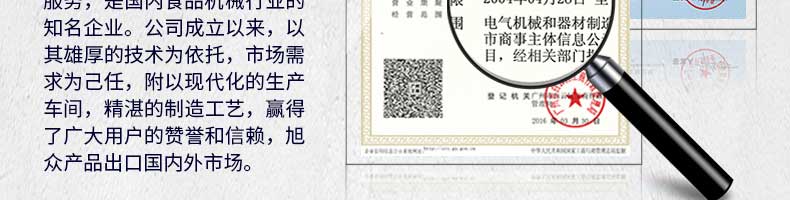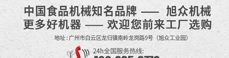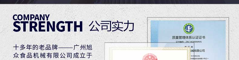 廣州旭眾食品機(jī)械有限公司是一家集科研開發(fā),生產(chǎn)設(shè)計(jì),營銷服務(wù)為一體的現(xiàn)代化生產(chǎn)企業(yè)。現(xiàn)代化生產(chǎn)車間,精湛制造技術(shù),所產(chǎn)機(jī)械歷經(jīng)市場重重考驗(yàn),不斷贏得海內(nèi)外客戶的贊譽(yù)。