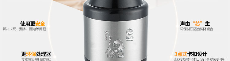 DCLQ40-廚房垃圾處理器,該機(jī)是一種現(xiàn)代化的廚房電器,它用全新的方法來處理現(xiàn)代家庭中的食品廢物。處理器裝于廚房水槽下,能夠有效地將食物垃圾研磨成細(xì)小顆粒,直接從下水管道排出,從而輕松實現(xiàn)及時方便快捷的廚房清潔,優(yōu)化家居環(huán)境。