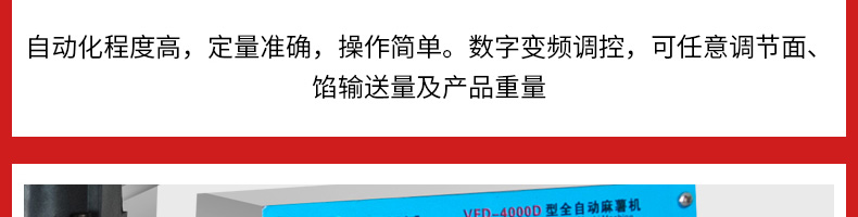VFD-4000D麻薯機(jī),操作簡(jiǎn)單定量準(zhǔn)確只要將面團(tuán)與餡料放入進(jìn)料口,開(kāi)機(jī)便可包餡、成型,裹粉,篩粉,提升輸送等生產(chǎn)工藝流程。送面、送餡均采用雙絞籠結(jié)構(gòu),數(shù)字變頻調(diào)控,可任意調(diào)節(jié)面、餡輸送量及產(chǎn)品重量。