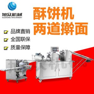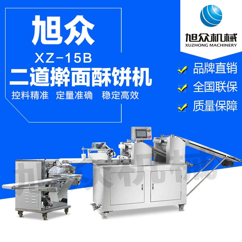 xz-15B二段酥餅機,生產速度快、效率高、生產流程流暢,各環節都輔以精密電控設備控制,不會出現堵面、破酥等現象??缮a蘇式月餅、肉松餅、老婆餅、廈門餡餅、金華酥餅、拉絲面包等等特色酥餅,適用于大、中型糕餅生產廠家,免費提供工藝技術。