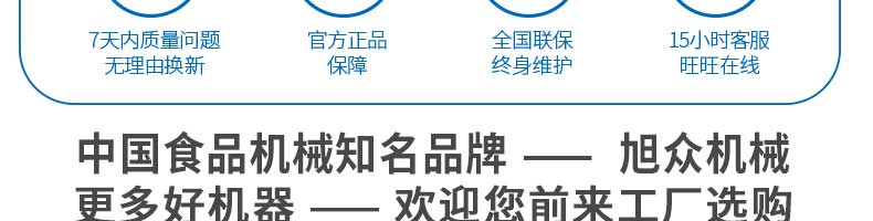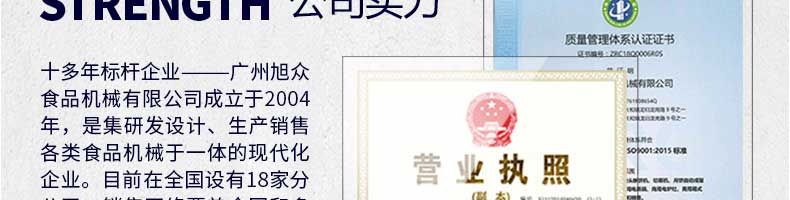 廣州旭眾食品機械有限公司是一家集科研開發(fā),生產設計,營銷服務為一體的現(xiàn)代化生產企業(yè)。現(xiàn)代化生產車間,精湛制造技術,所產機械歷經市場重重考驗,不斷贏得海內外客戶的贊譽。