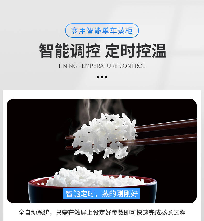 單車蒸柜,整機不銹鋼材質本機由內膽殼、保溫層、外護板組成,整機采用優質不銹鋼,加上硅膠密封及硅酸鋁保溫材料,堅固、耐用、保溫效果好,外形美觀。循環均勻發熱,專門用于發熱管干燒空氣,溫度任意調節,讓食物口感怡到好吃