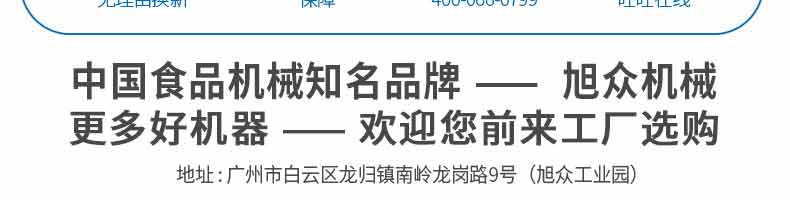 廣州旭眾食品機械有限公司是一家集科研開發(fā),生產(chǎn)設(shè)計,營銷服務(wù)為一體的現(xiàn)代化生產(chǎn)企業(yè)。現(xiàn)代化生產(chǎn)車間,精湛制造技術(shù),所產(chǎn)機械歷經(jīng)市場重重考驗,不斷贏得海內(nèi)外客戶的贊譽。